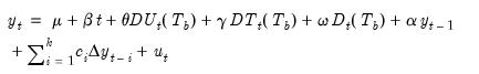 Equation (42.53), above); trending data with intercept and trend break. However Perron now selects the breakpoint corresponding to the minimum intercept break