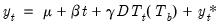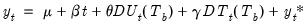 which takes the value 0 for all dates prior to the break, and is a break date re-based trend for all subsequent dates.