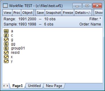 Note also that only the first page of a multi-page workfile will be read by versions prior to EViews 5; all other pages will be dropped. You may save individual pages of a multi-page workfile to separate workfiles so that they may be read by versions that do not support multiple pages (see