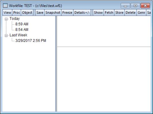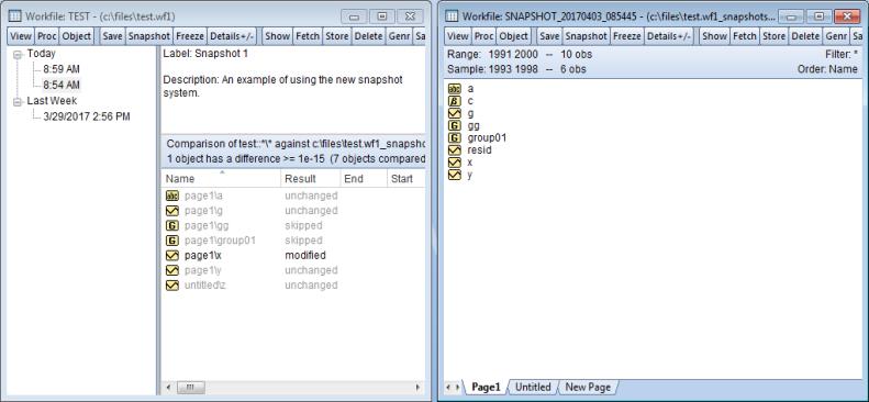 Note that automatic snapshots are suspended when an EViews program is actively running.